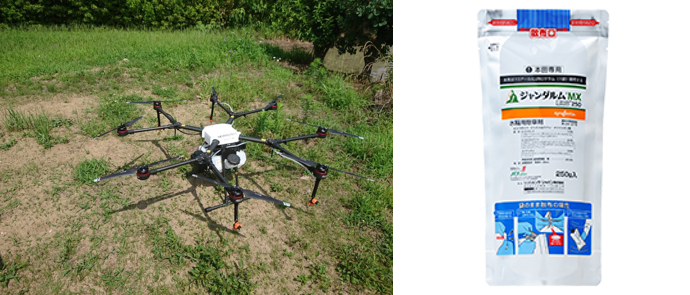 ドローンにて「ジャンダルムMX豆つぶ250」を散布しました。