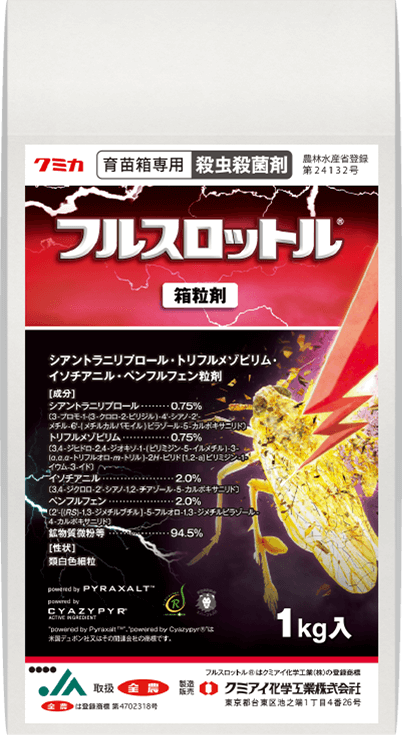紋枯病が発生した田んぼには紋枯病対応の箱施用剤を使用してください。
